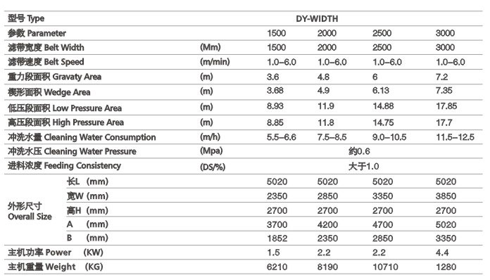 2、根據(jù)所來物料性質(zhì)選擇濾帶材料等。濾帶過濾能力和再生性能,剝離性能良好,保證物料脫水效果優(yōu)良。